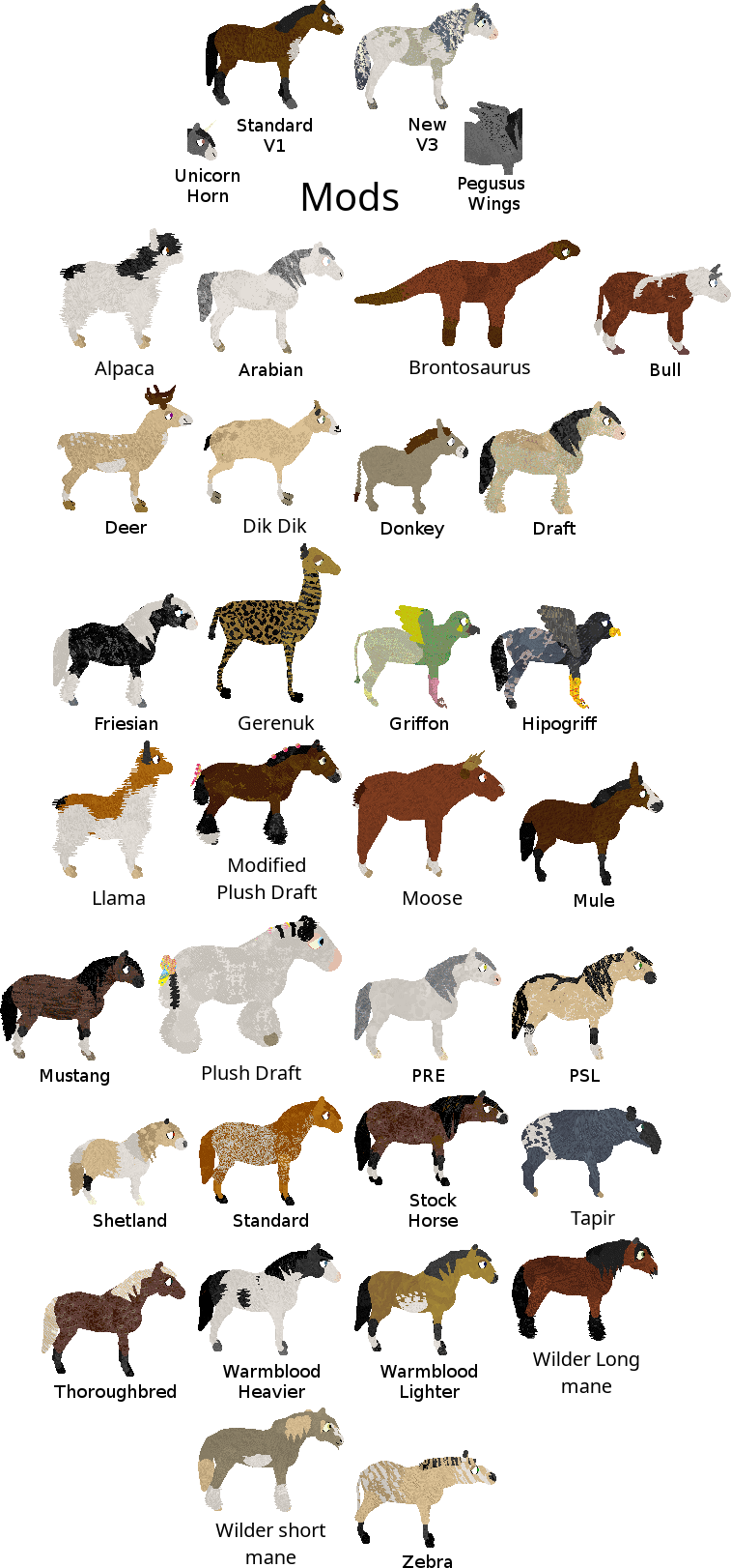 Because I'm lazy and don't feel like going that far into horse genetics(and LTP's are kinda fictional anyways), I will use this list for what mod is dominant over the others. The mods as well as fantasy add ons(horn/wings) will be the last three sets of letters on my LTP's genome.